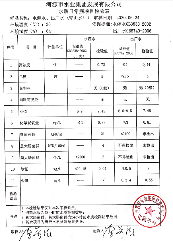 2020年6月24日水質(zhì)檢驗(yàn)報(bào)告
