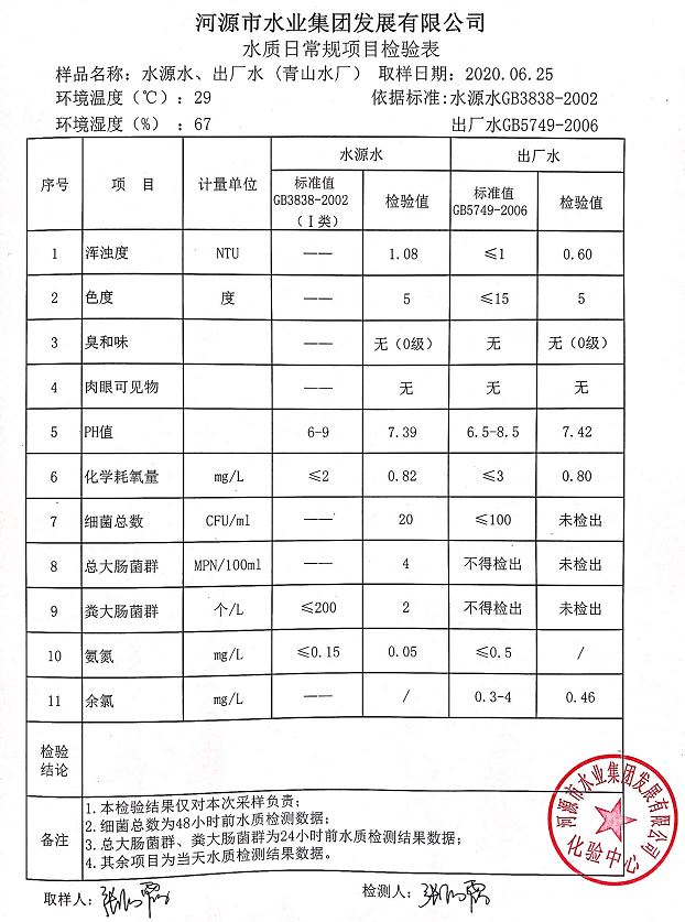 2020年6月25日水質(zhì)檢驗(yàn)報(bào)告
