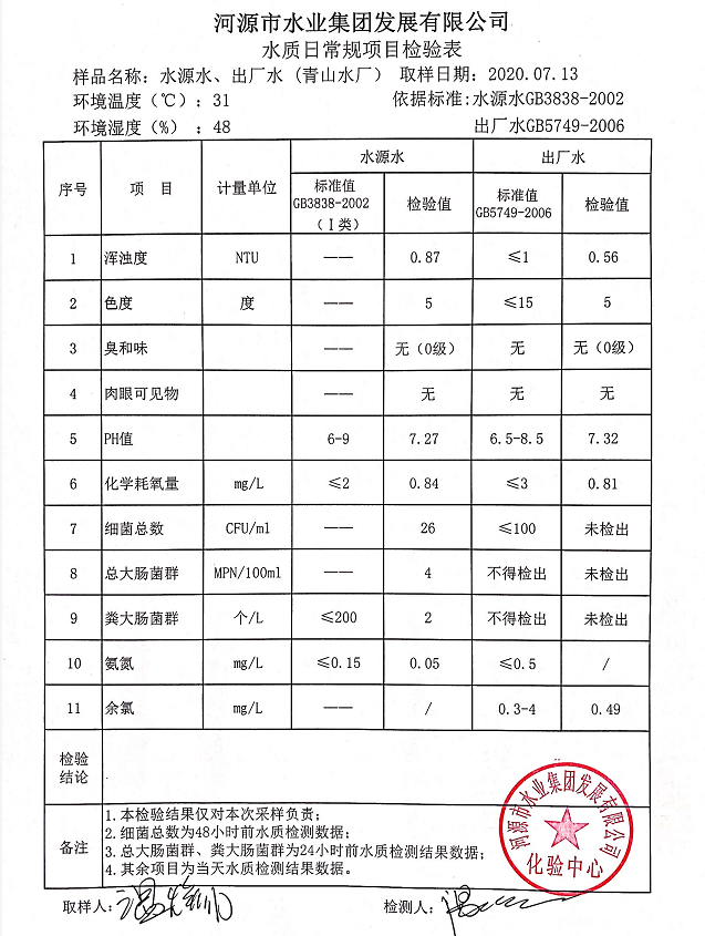 2020年7月13日水質(zhì)檢驗(yàn)報(bào)告