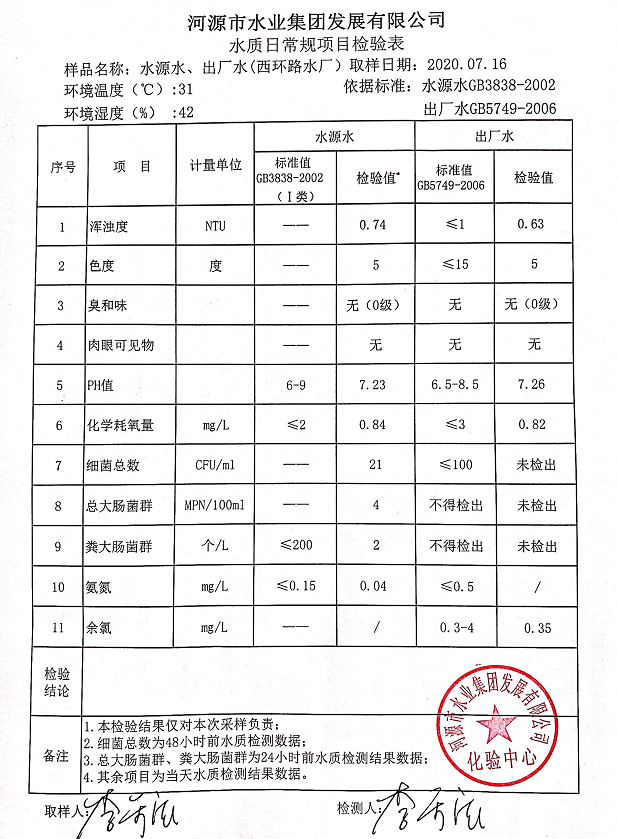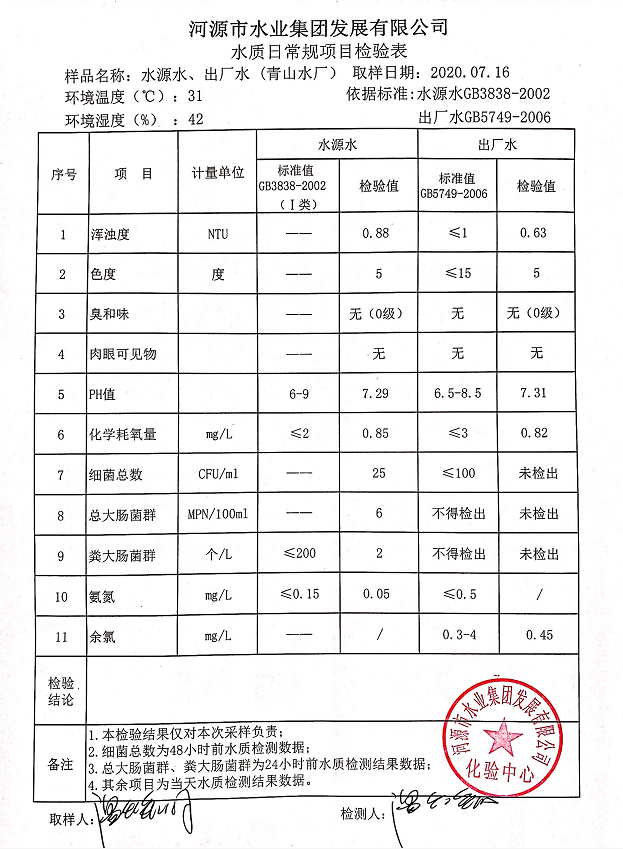 2020年7月16日水質(zhì)檢驗(yàn)報(bào)告