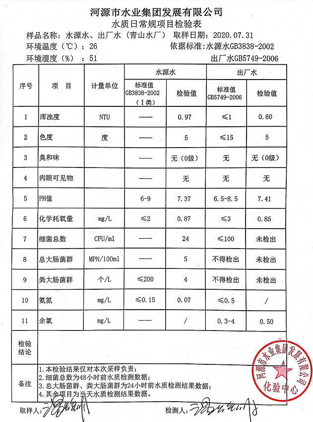 2020年7月31日水質(zhì)檢驗(yàn)報(bào)告