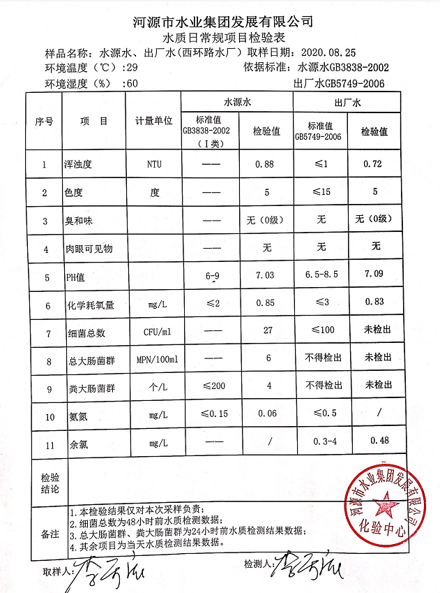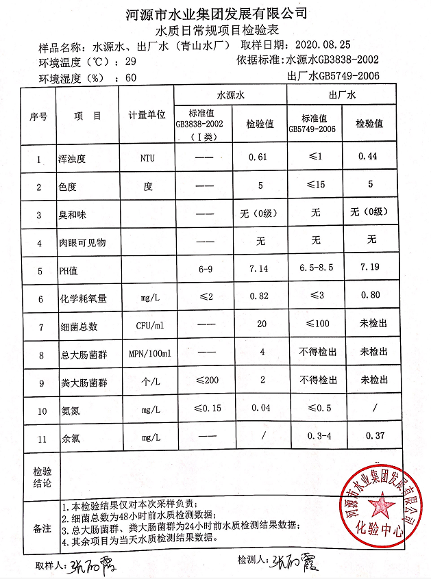 2020年8月25日水質(zhì)檢驗(yàn)報(bào)告