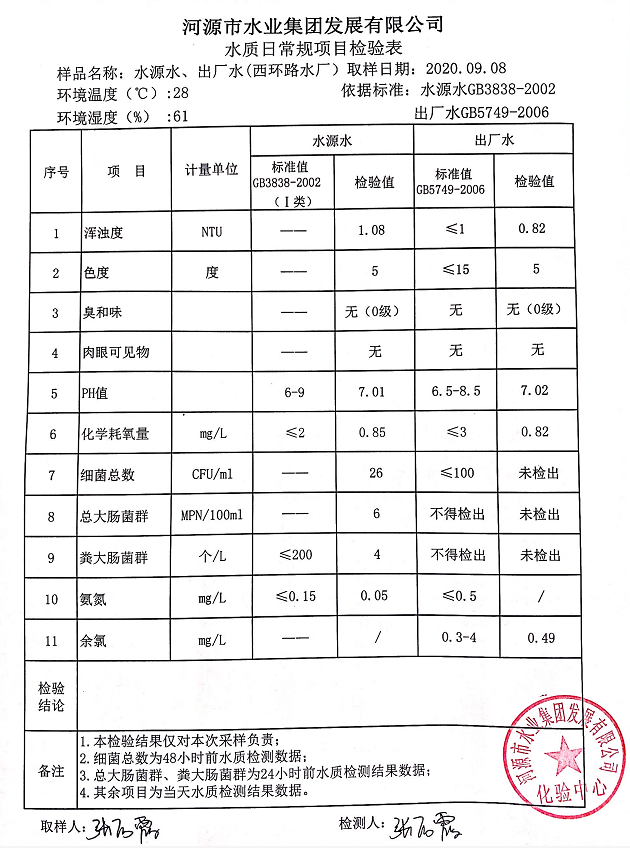 2020年9月8日水質(zhì)檢驗報告