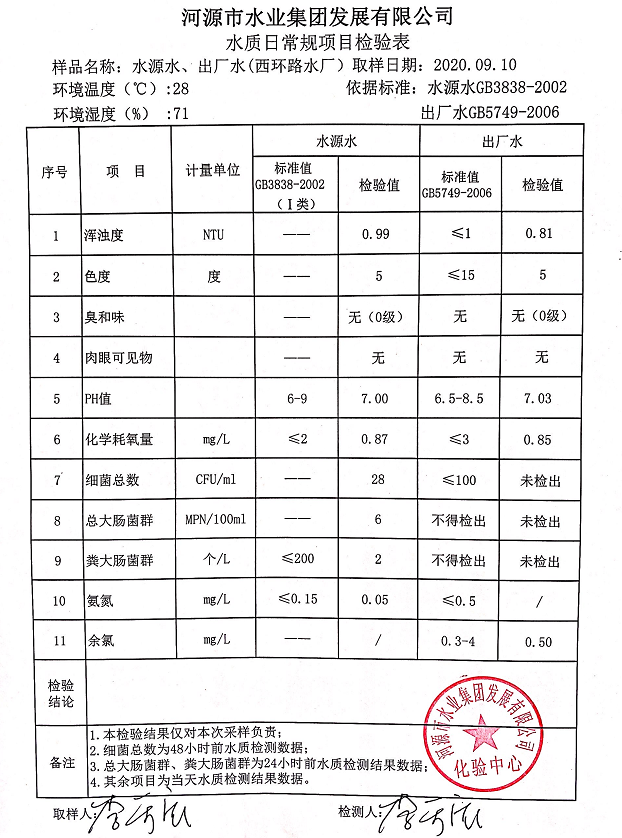 2020年9月10日水質(zhì)檢驗(yàn)報(bào)告