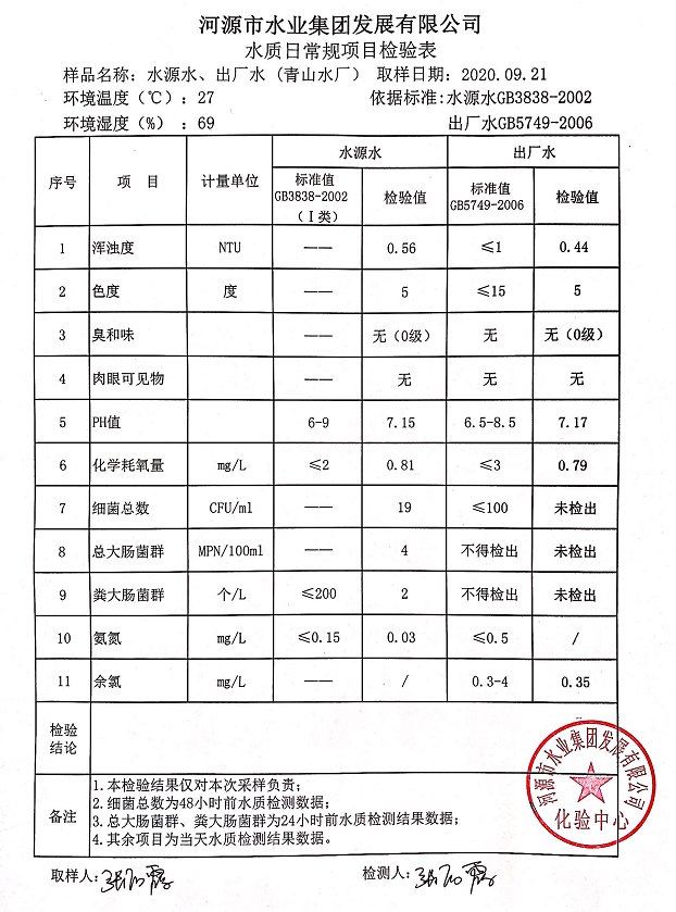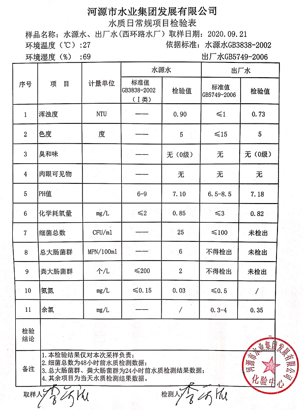 2020年9月21日水質(zhì)檢驗(yàn)報(bào)告