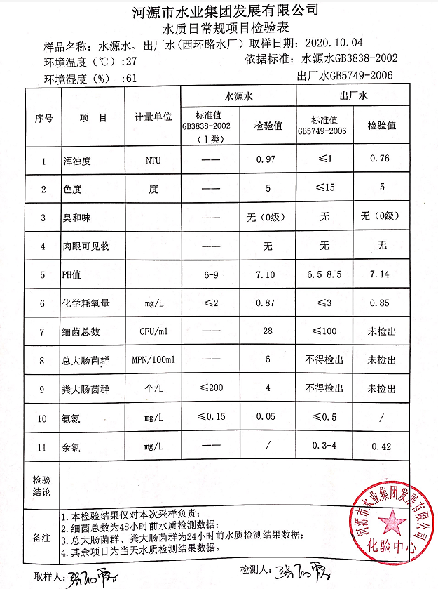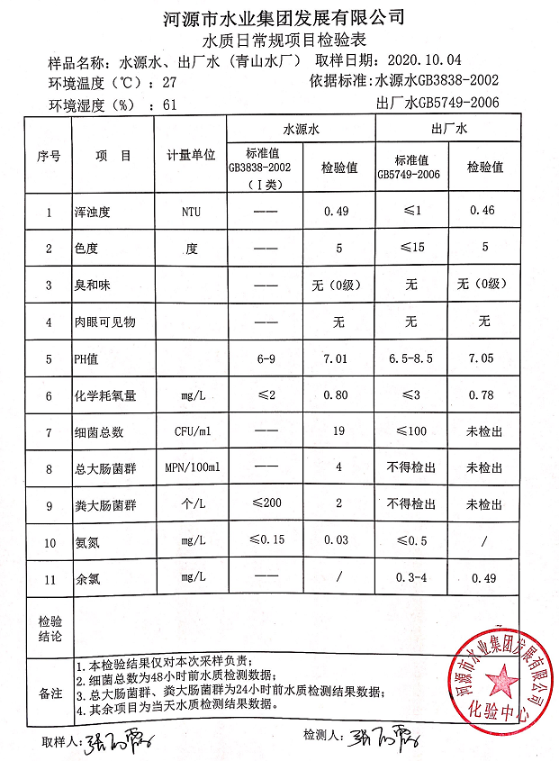 2020年10月4日水質(zhì)檢驗(yàn)報(bào)告