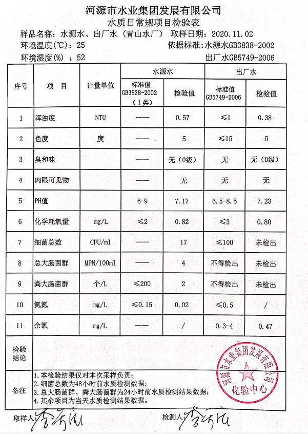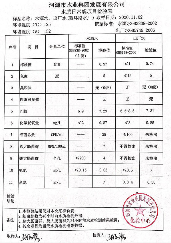2020年11月2日水質(zhì)檢驗報告