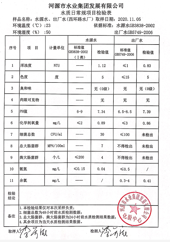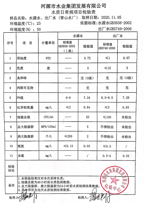 2020年11月5日水質檢驗報告