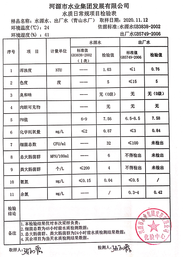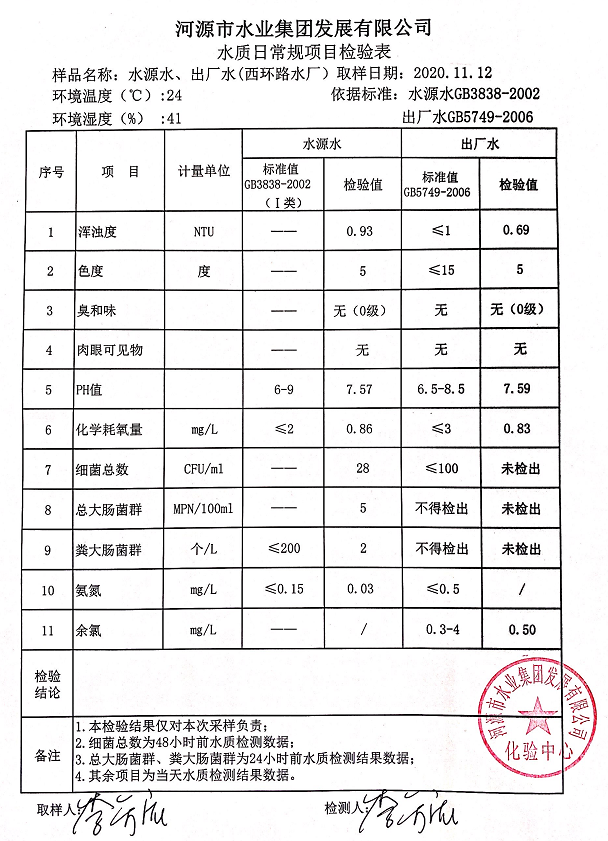 2020年11月12日水質(zhì)檢驗(yàn)報(bào)告