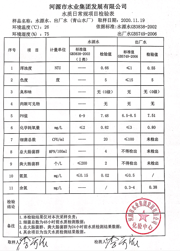 2020年11月19日水質(zhì)檢驗(yàn)報(bào)告