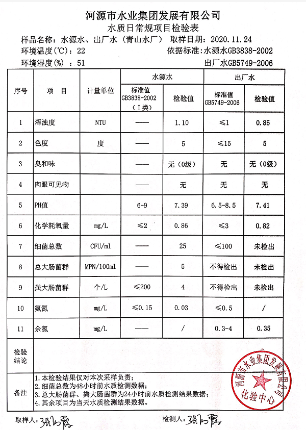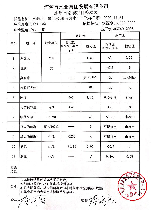 2020年11月24日水質(zhì)檢驗(yàn)報(bào)告