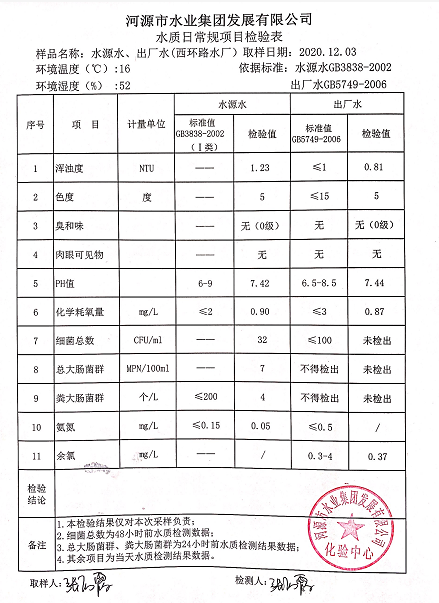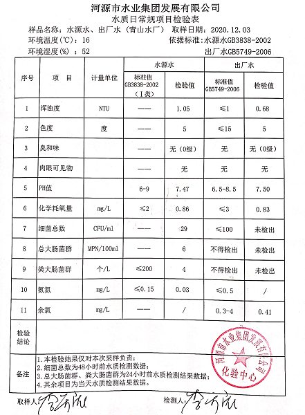 2020年12月3日水質(zhì)檢驗(yàn)報(bào)告
