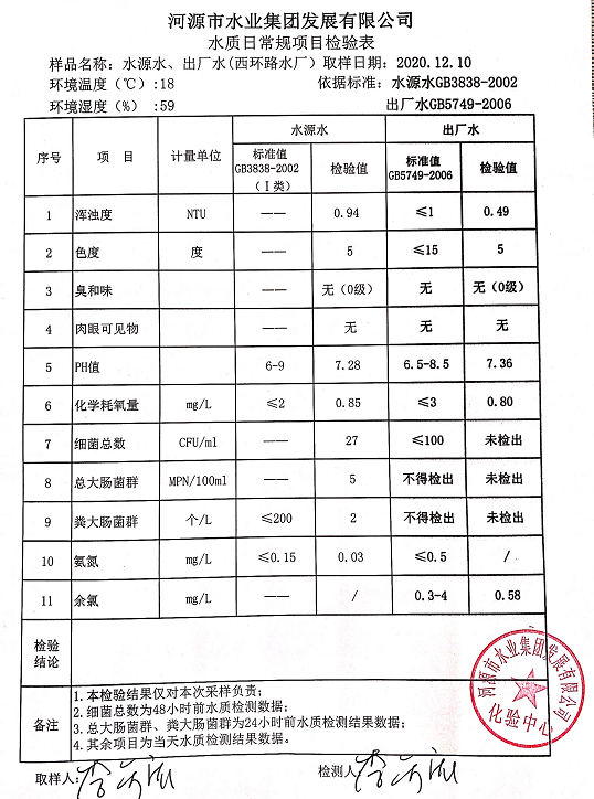 2020年12月10日水質(zhì)檢驗(yàn)報(bào)告