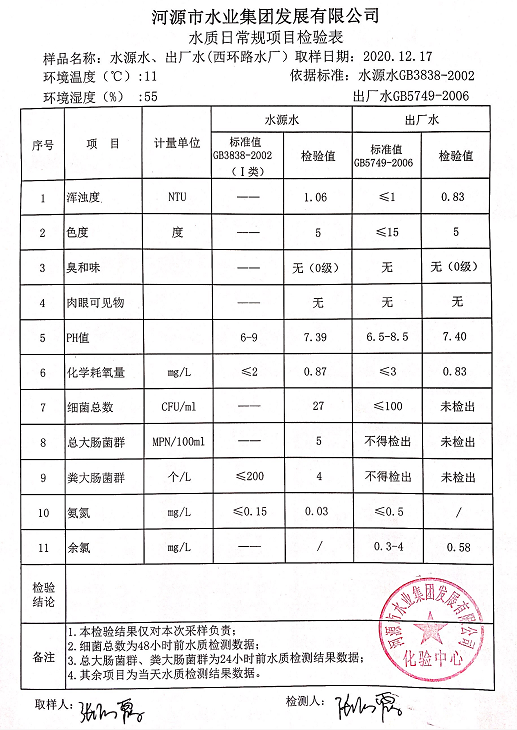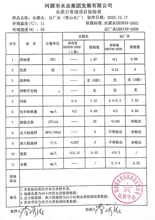 2020年12月17日水質(zhì)檢驗(yàn)報(bào)告