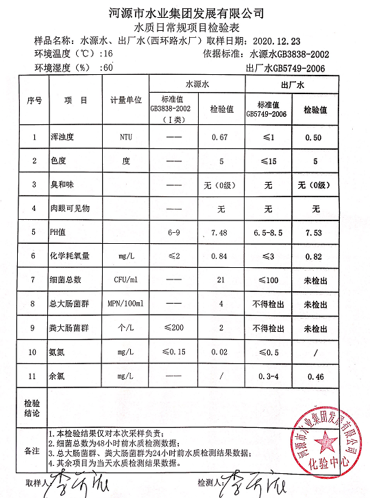 2020年12月23日水質(zhì)檢驗(yàn)報(bào)告