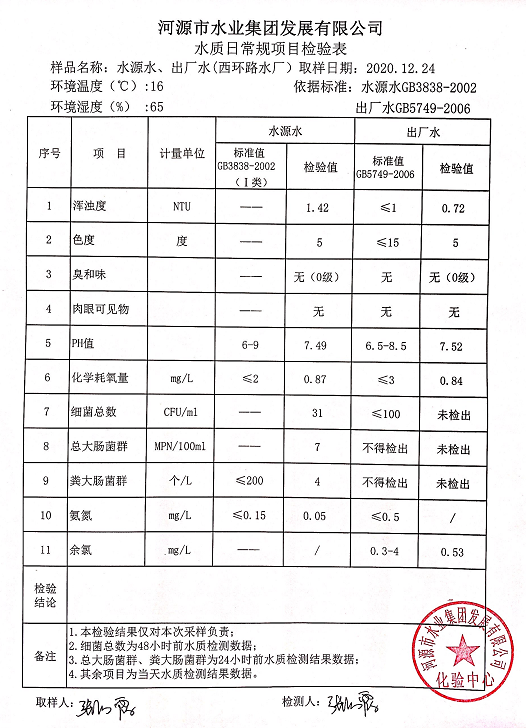 2020年12月24日水質(zhì)檢驗(yàn)報告