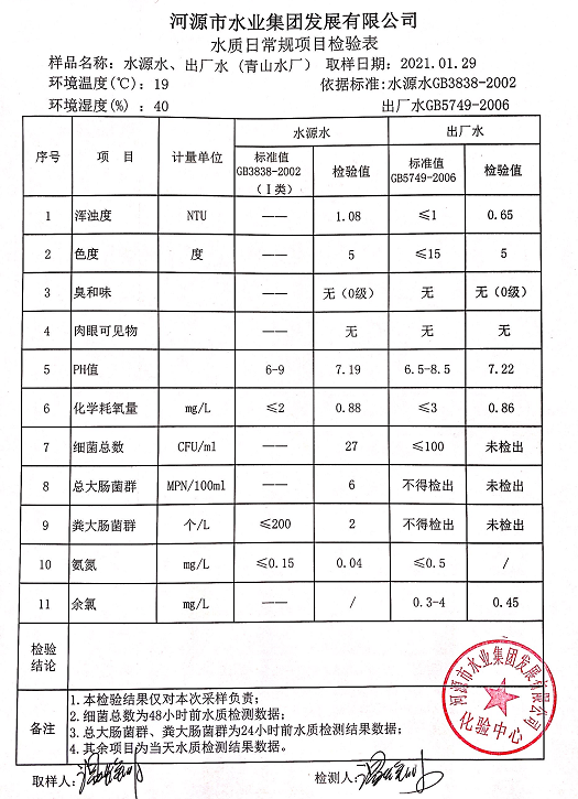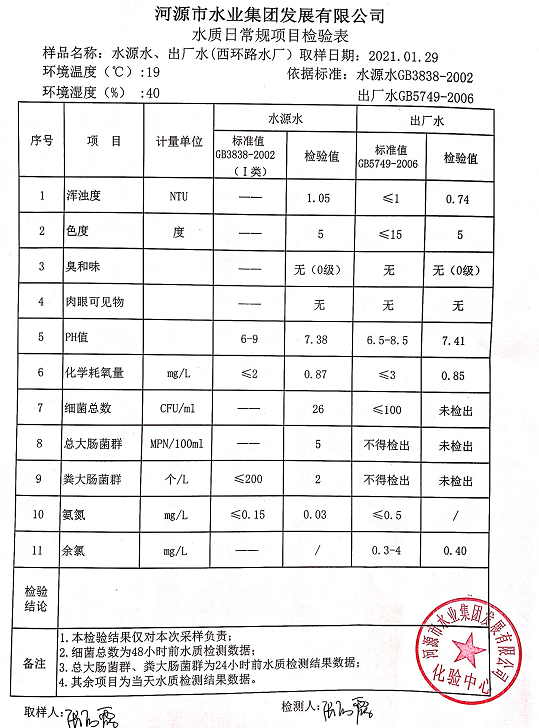 2021年1月29日水質(zhì)檢驗(yàn)報(bào)告