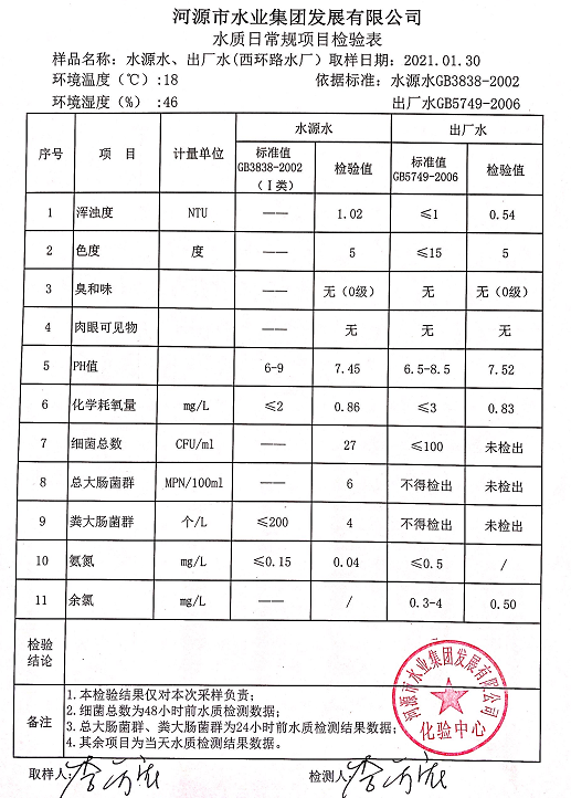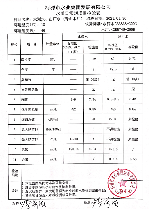 2021年1月30日水質(zhì)檢驗報告