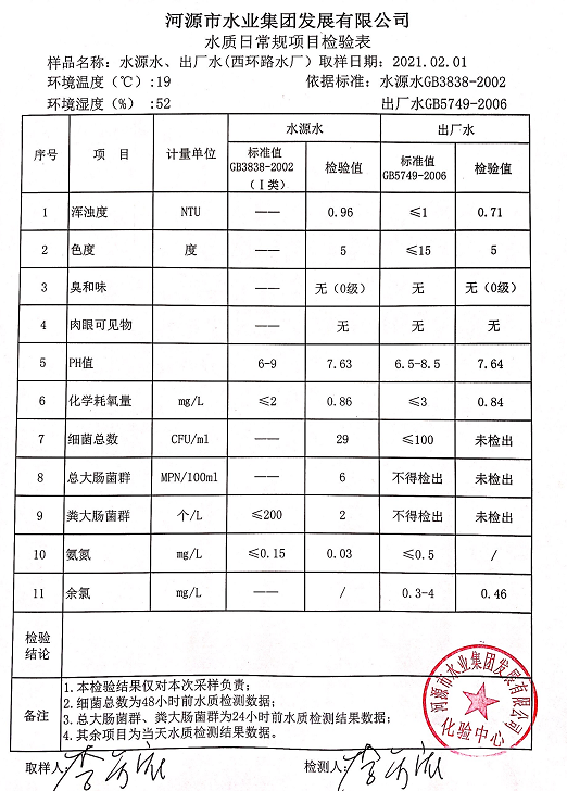 2021年2月1日水質(zhì)檢驗(yàn)報(bào)告