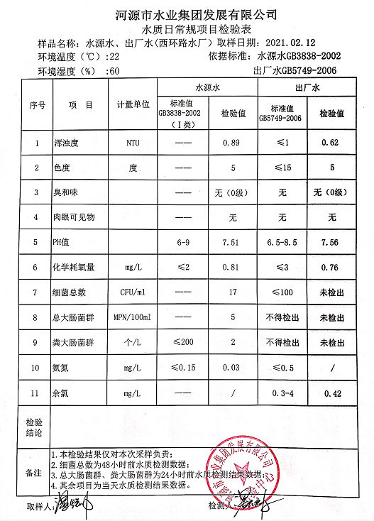 2021年2月12日水質(zhì)檢驗(yàn)報(bào)告
