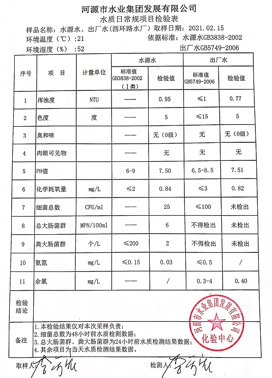 2021年2月15日水質(zhì)檢驗(yàn)報(bào)告