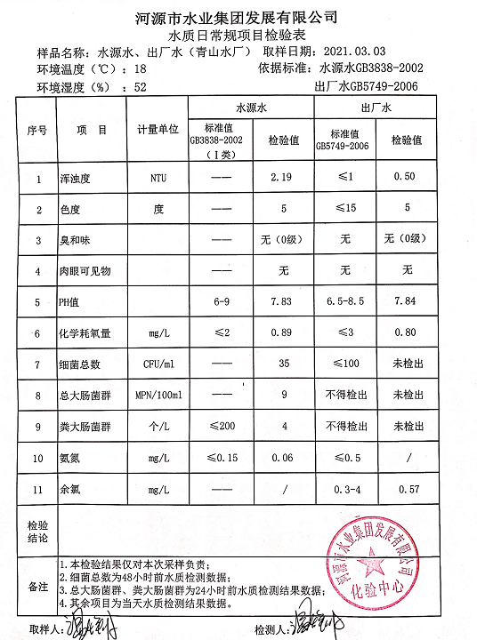 2021年3月3日水質(zhì)檢驗(yàn)報(bào)告