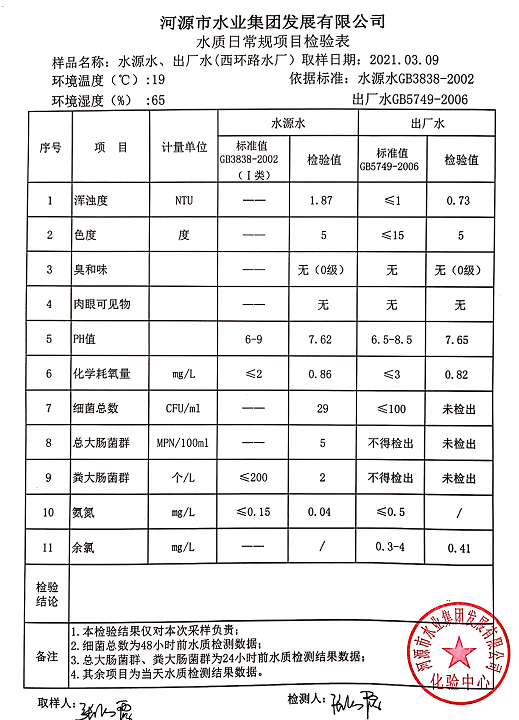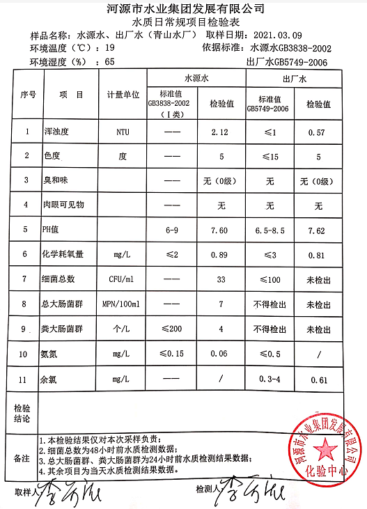 2021年3月9日水質(zhì)檢驗(yàn)報(bào)告