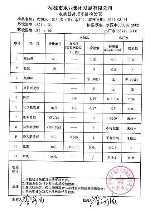 2021年3月14日水質檢驗報告