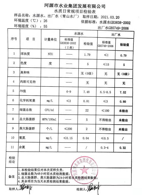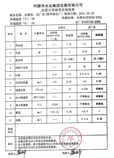 2021年3月20日水質(zhì)檢驗報告