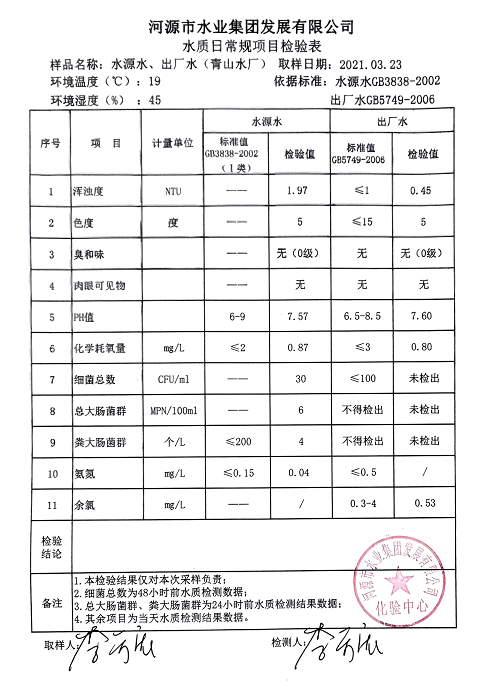 2021年3月23日水質(zhì)檢驗報告