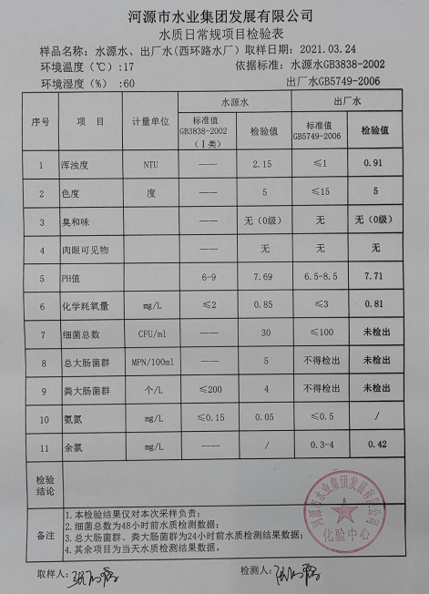 2021年3月24日水質(zhì)檢驗(yàn)報(bào)告