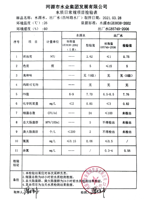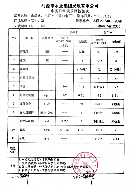 2021年3月28日水質(zhì)檢驗(yàn)報(bào)告