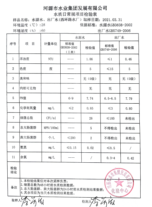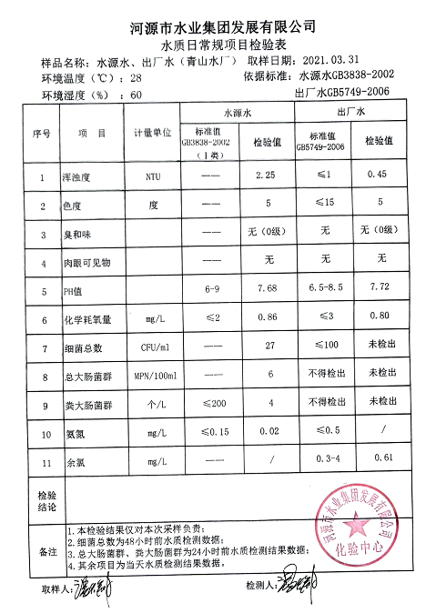2021年3月31日水質(zhì)檢驗(yàn)報(bào)告