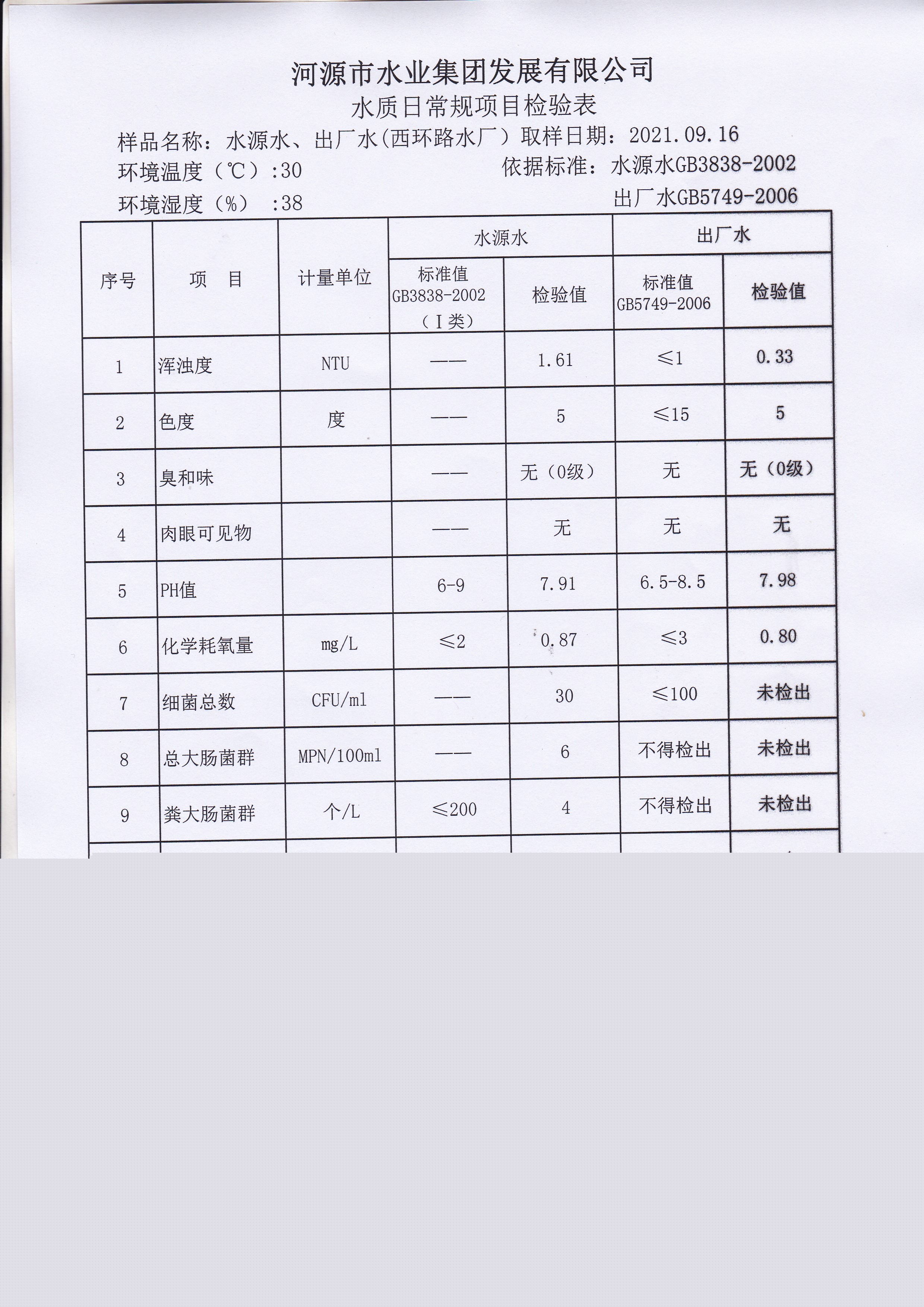 2021年9月16日水質(zhì)檢驗報告 ??