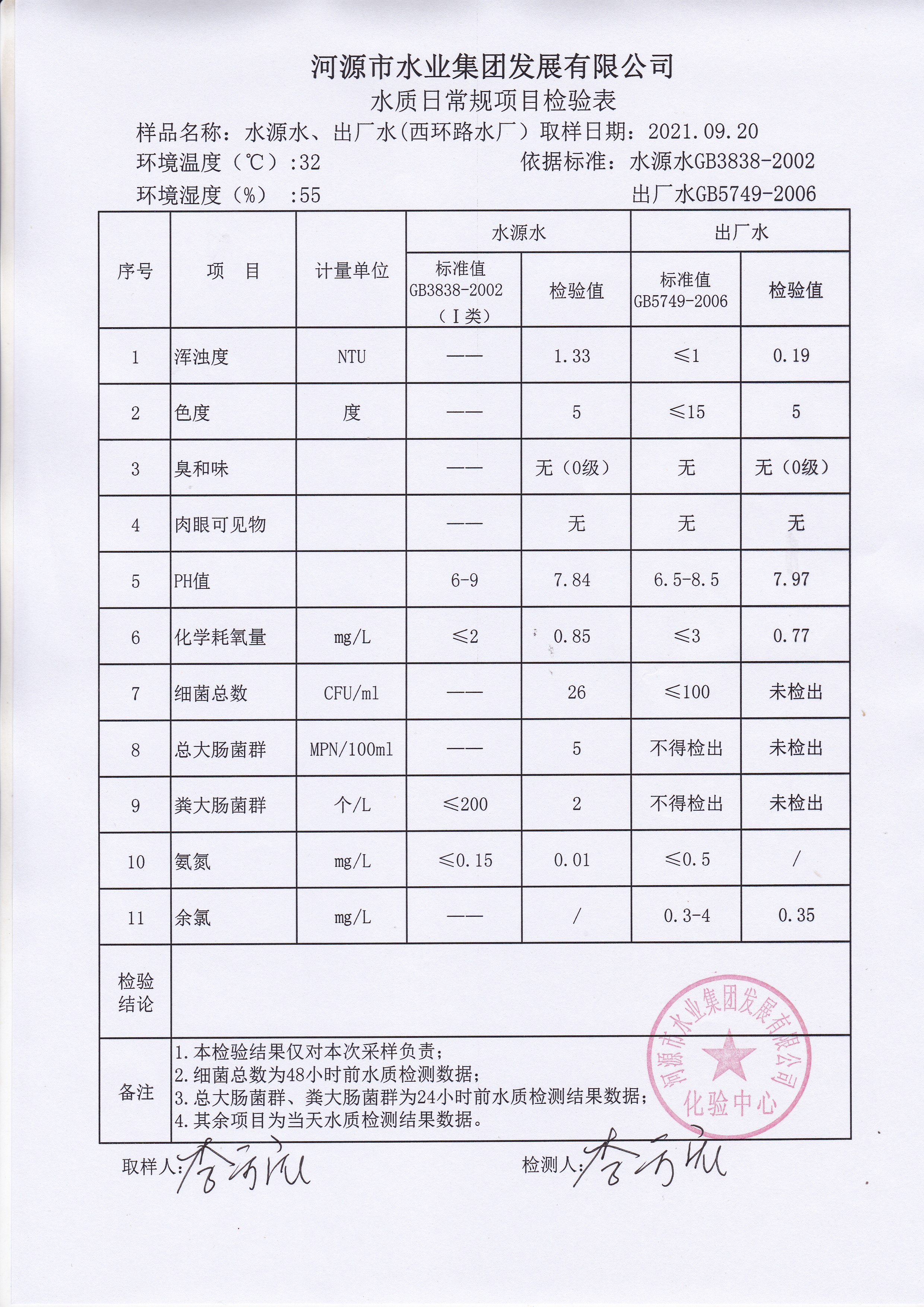 2021年9月20日水質(zhì)檢驗報告 ?