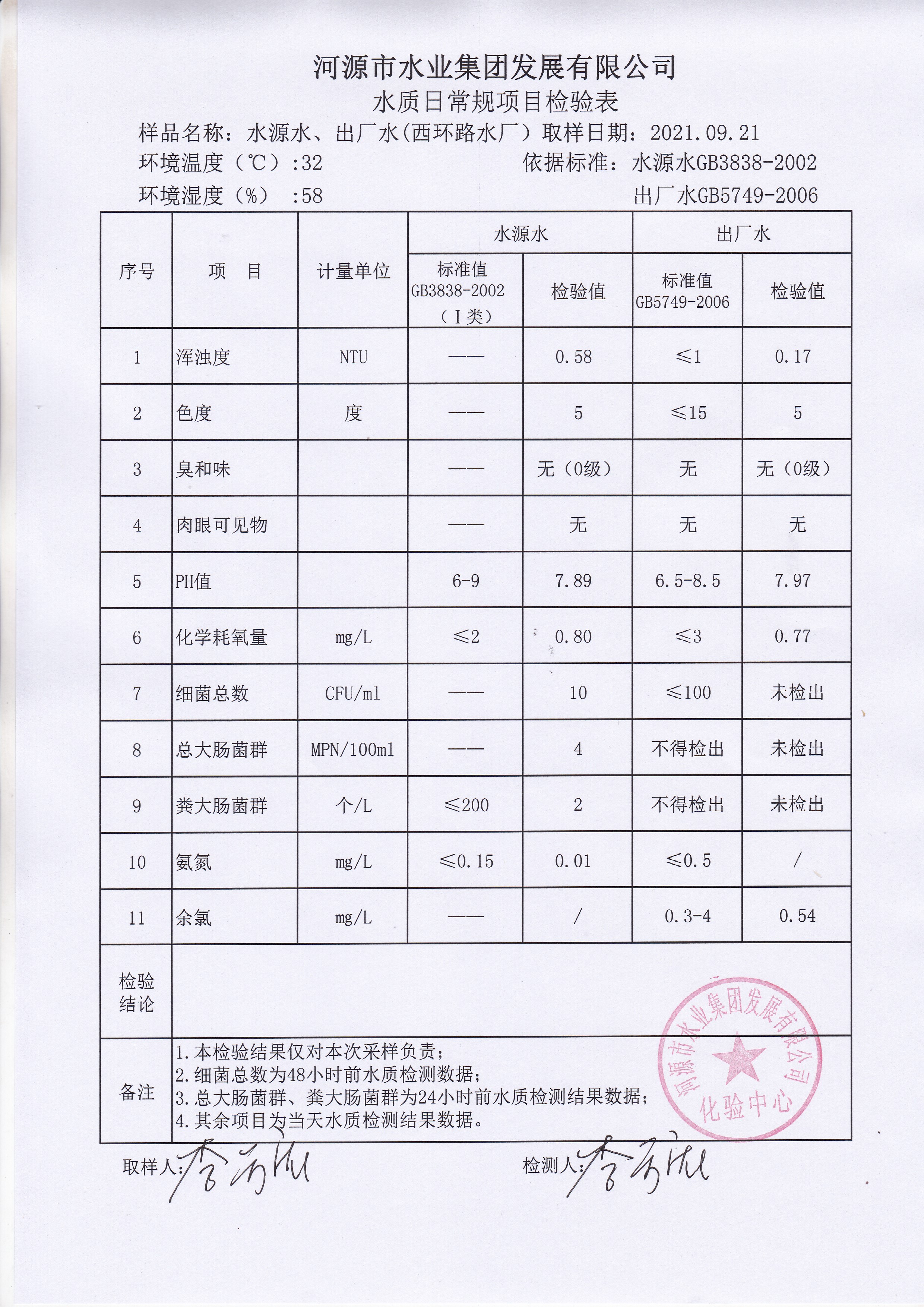2021年9月21日水質(zhì)檢驗(yàn)報(bào)告
