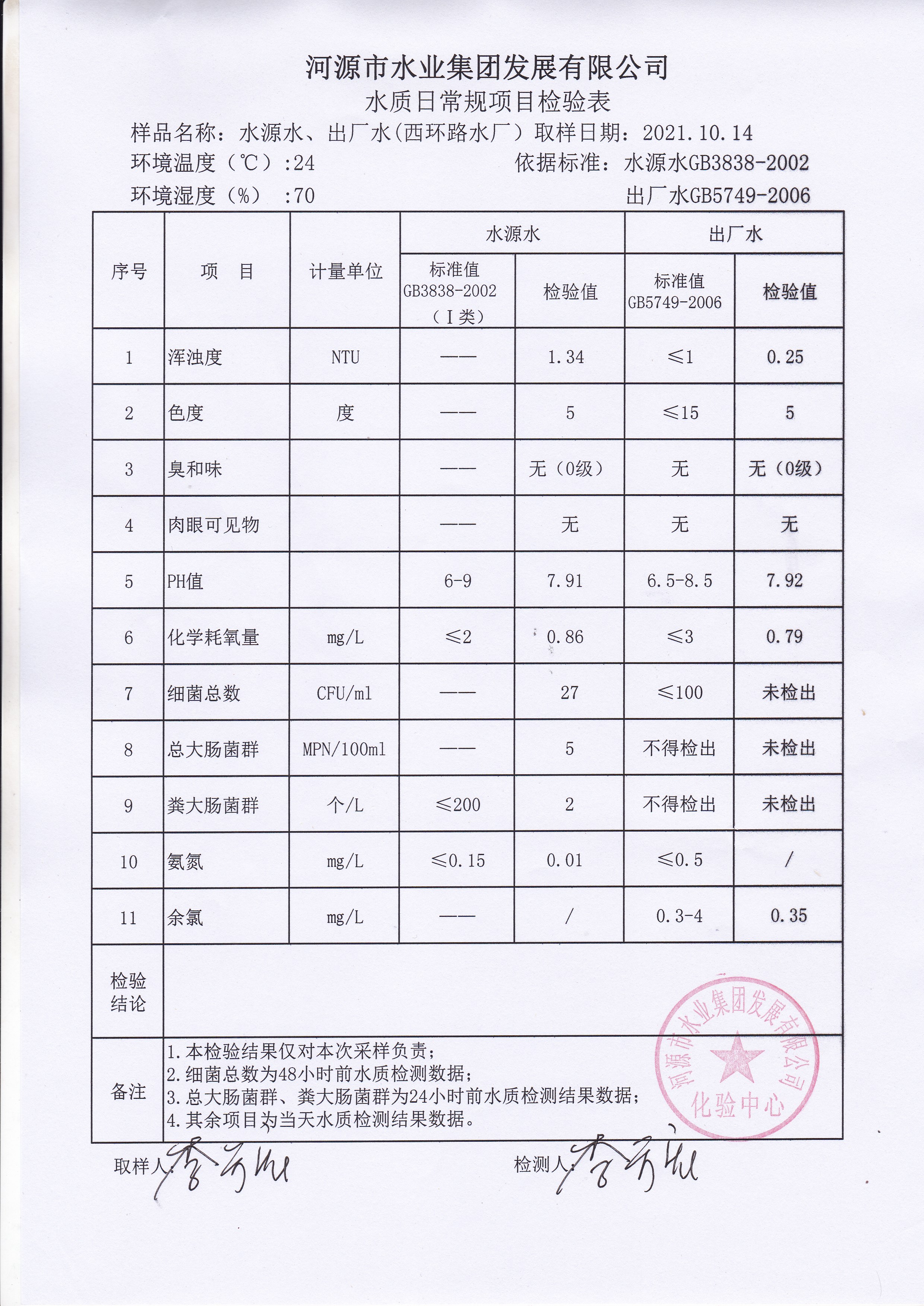 2021年10月14日水質(zhì)檢驗(yàn)報(bào)告