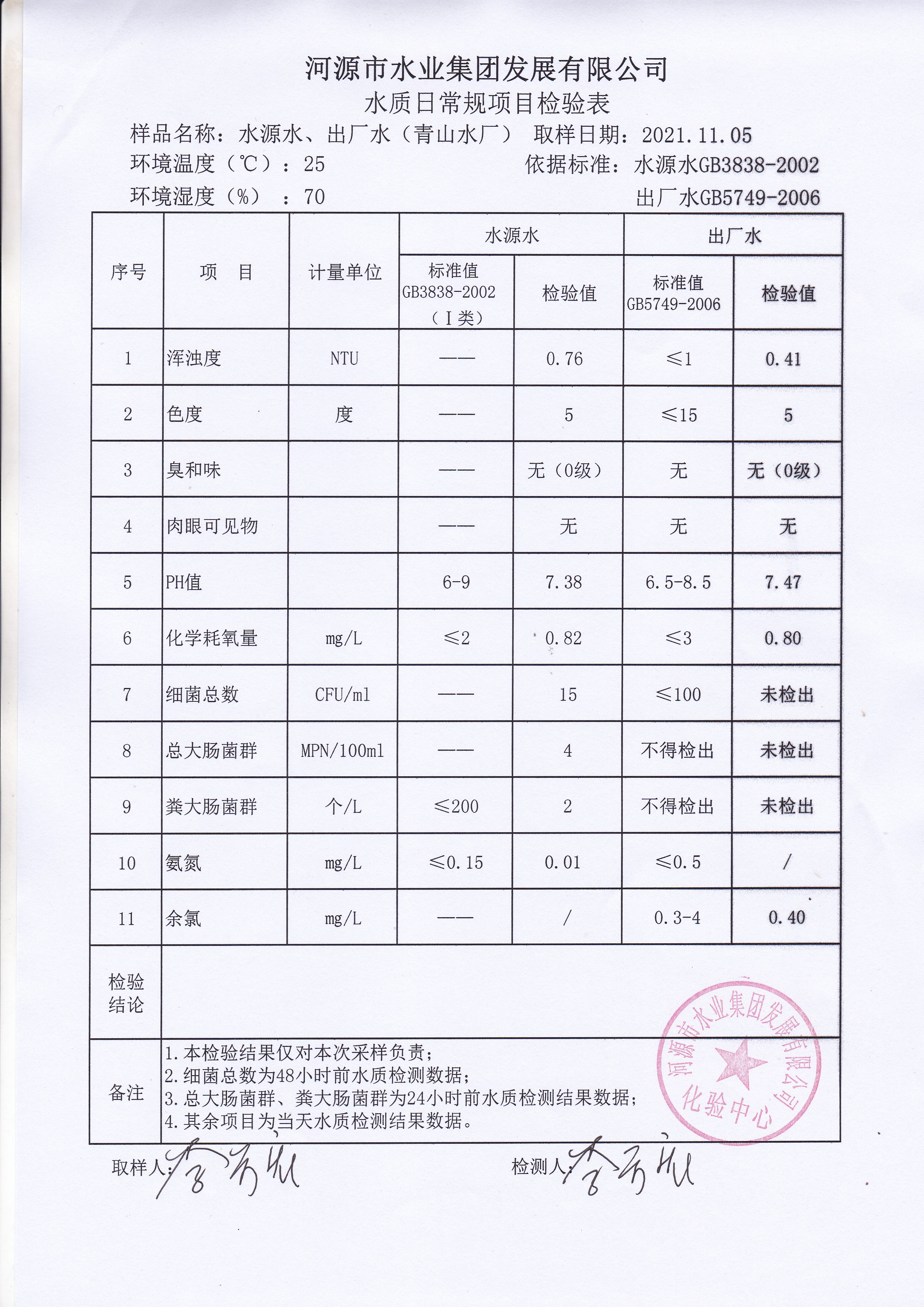 2021年11月5日水質(zhì)檢驗(yàn)報(bào)告
