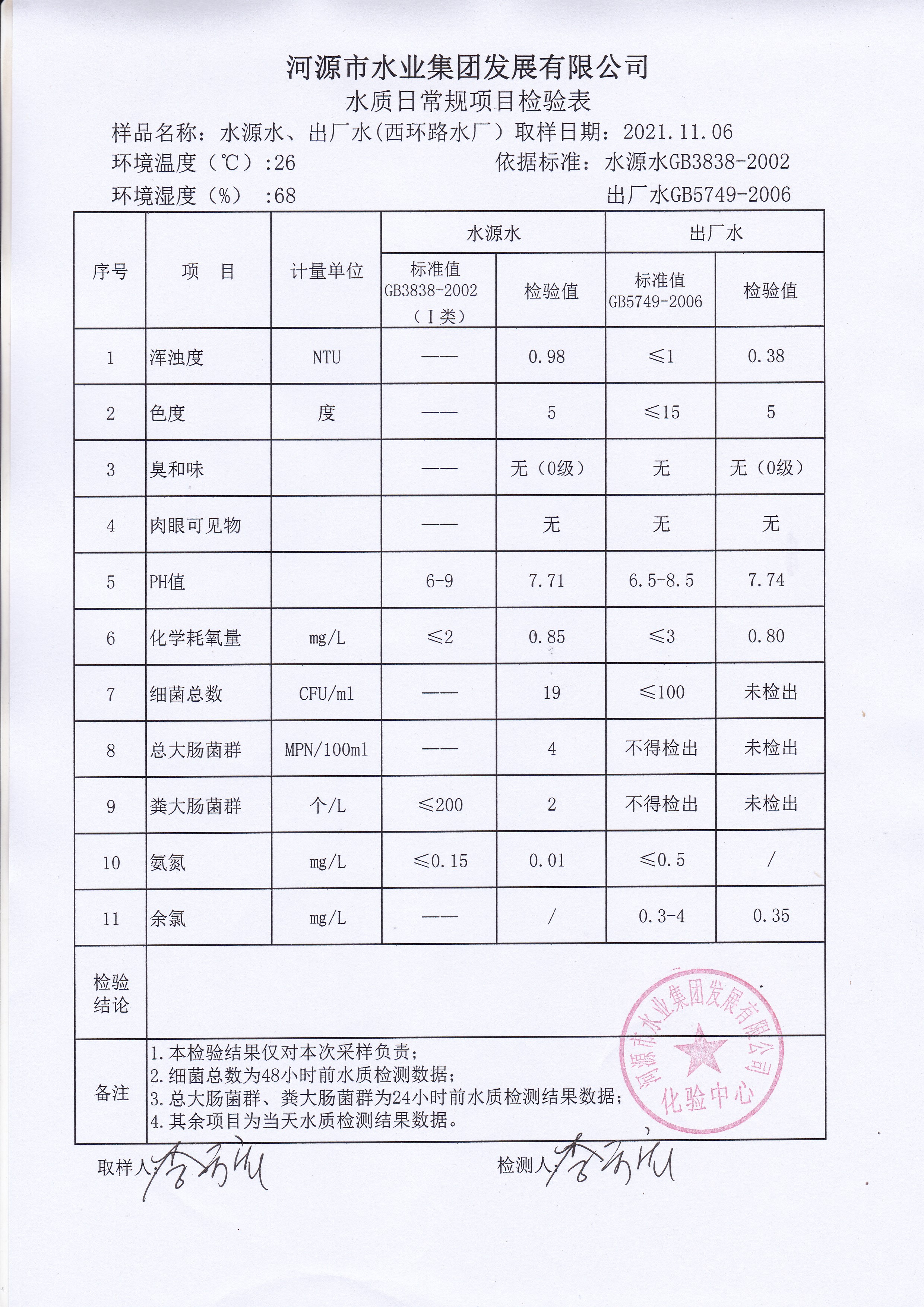 2021年11月6日水質(zhì)檢驗(yàn)報(bào)告