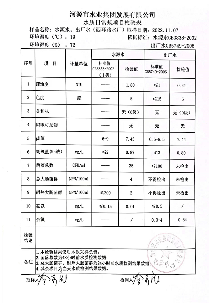 2022年11月7日水質(zhì)檢驗(yàn)報(bào)告