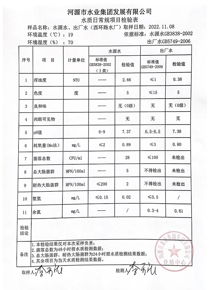 2022年11月8日水質(zhì)檢驗報告