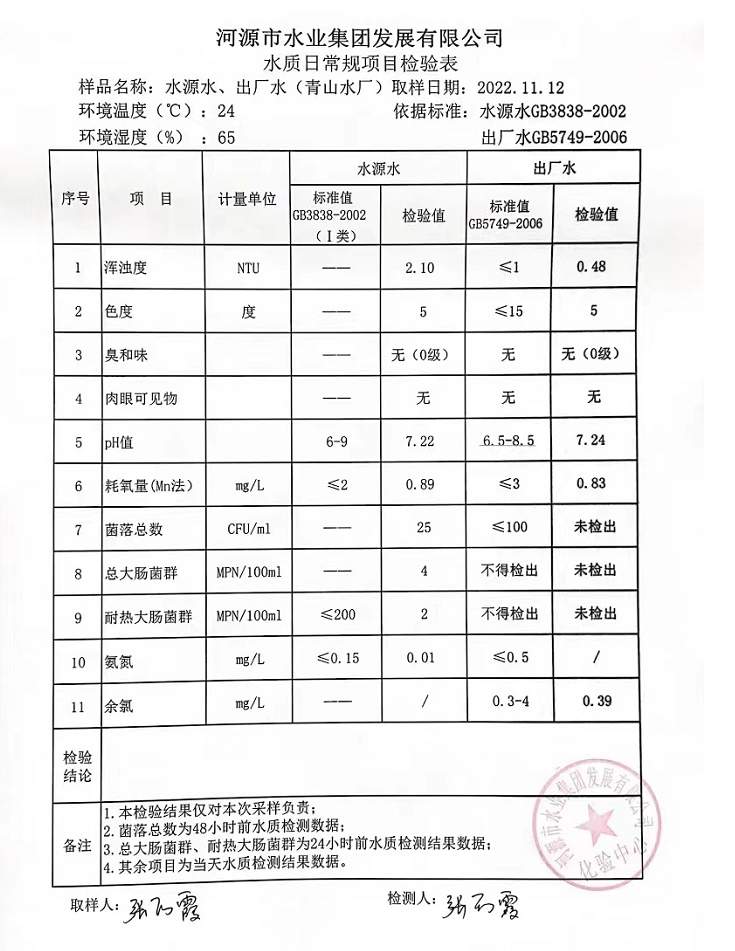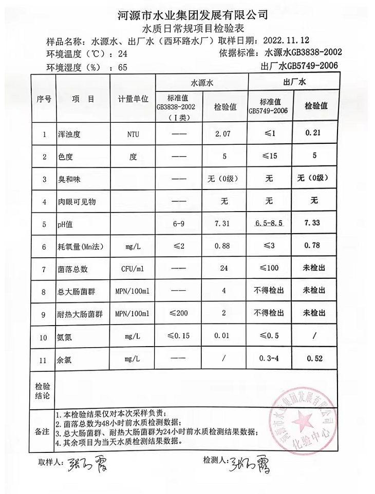 2022年11月12日水質(zhì)檢驗(yàn)報(bào)告