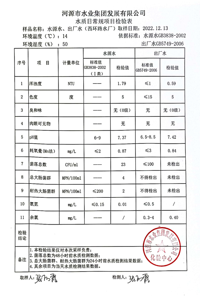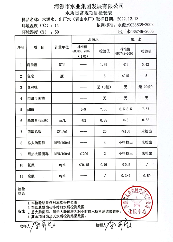 2022年12月13日水質(zhì)檢驗(yàn)報(bào)告