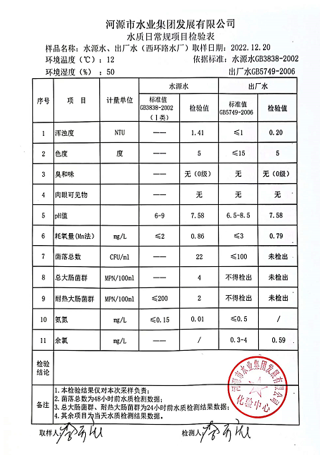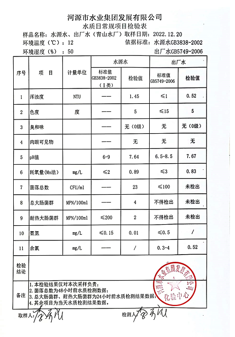 2022年12月20日水質(zhì)檢驗(yàn)報(bào)告