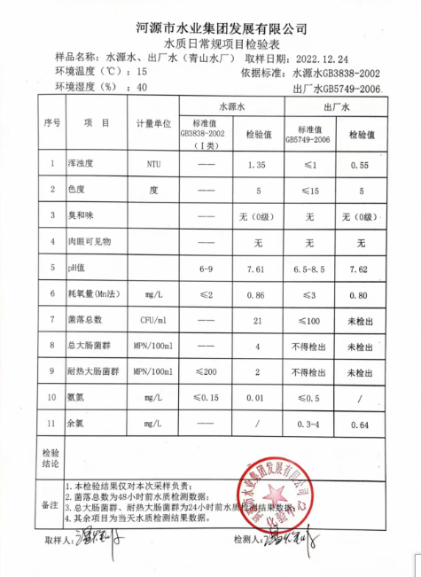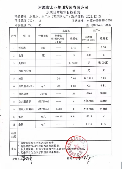 2022年12月24日水質(zhì)檢驗(yàn)報告