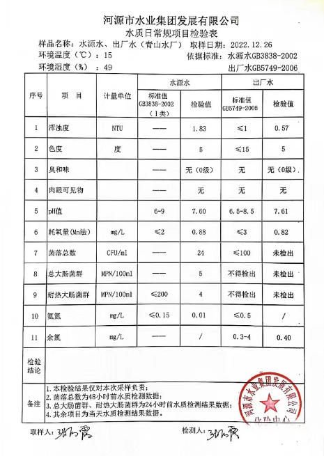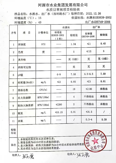 2022年12月26日水質(zhì)檢驗報告
