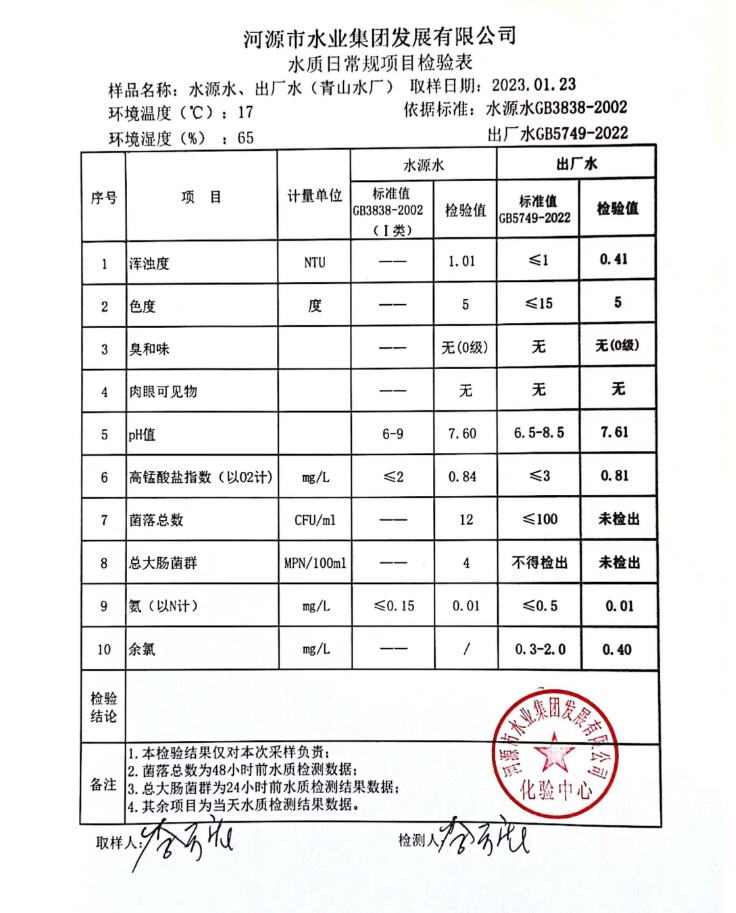 2023年1月23日水質(zhì)檢驗(yàn)報(bào)告