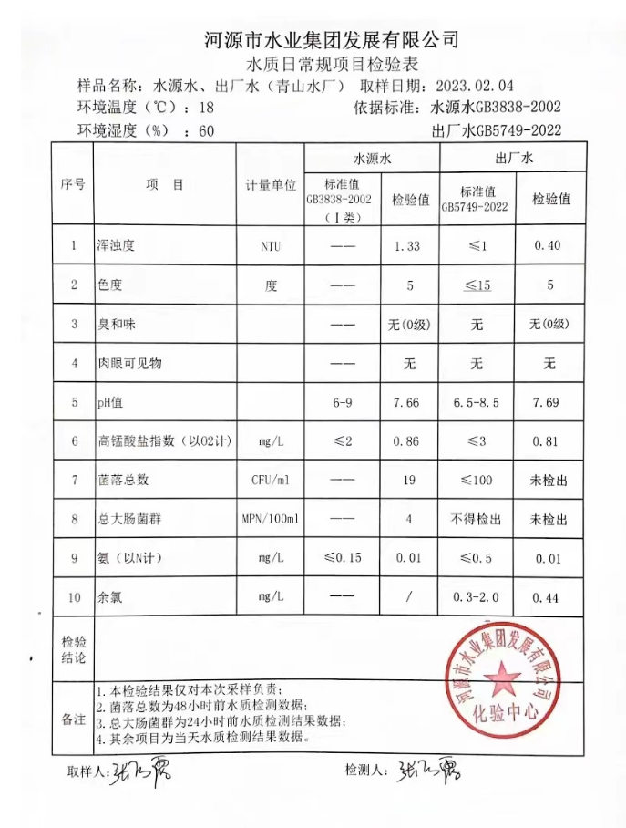 2023年2月4日水質(zhì)檢驗報告