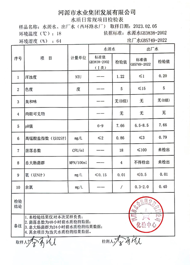2023年2月5日水質(zhì)檢驗報告