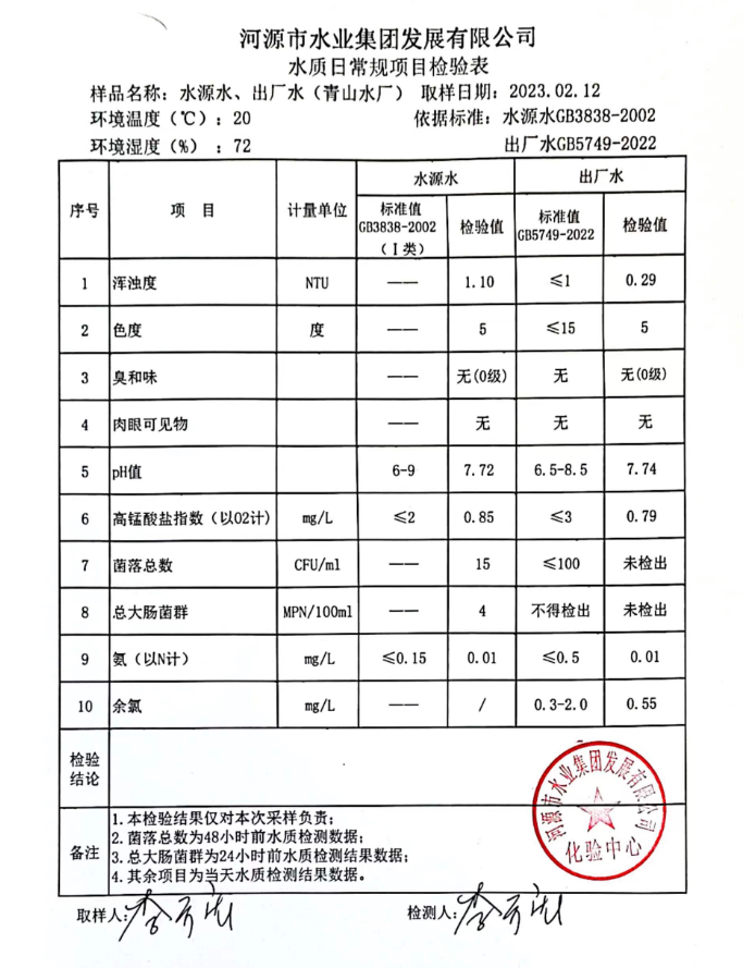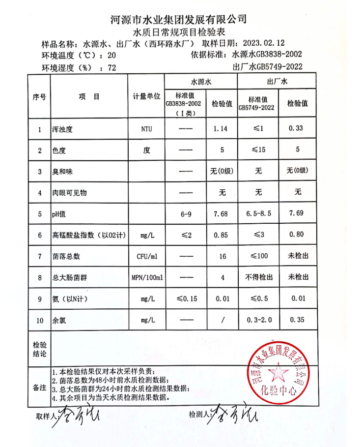 2023年2月12日水質檢驗報告